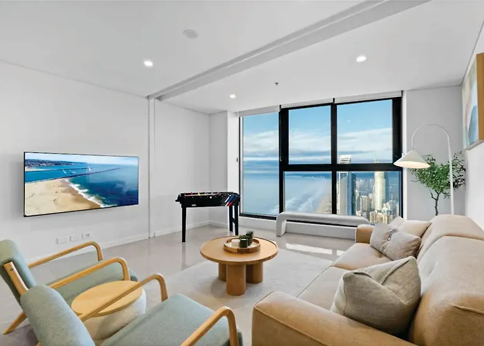 Situated merely a 5-minute walk from the Sling Shot & Vomatron Amusement Rides Gold Coast, Serain Residences On 88 Esplanade Surfers Paradise Gold Coast looks out onto the sea. Offering access to an indoor pool, this apartment is within reach of iFLY Gold Coast.